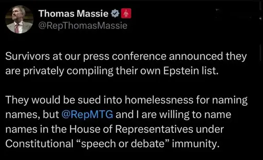 If MTG and Massie are the only sources of that information, I would not count on it being reliable. I would not be surprised if their version of the Epstein files only included Democrats.