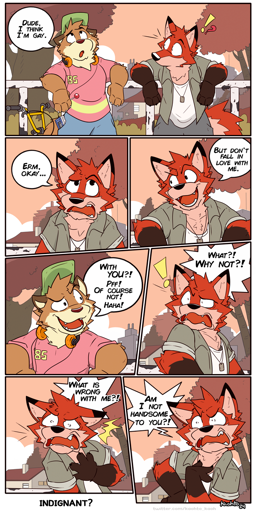 I might have interpreted this comic wrong, because I thought both of them were gay (or maybe second one is bi).