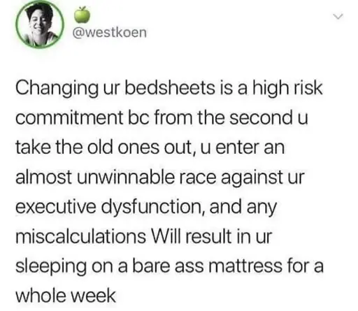 arrow-up1741arrow-down1imageBedsheetslemmy.dbzer0.comStamets@lemmy.dbzer0.com to ADHD memes@lemmy.dbzer0.comEnglish · 18 days agomessage-square82linkfedilink