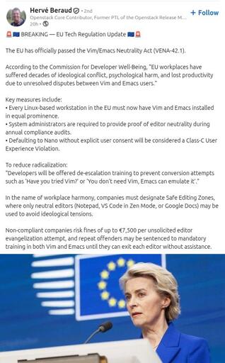 up for further discussion: are ideologically united editors such as VILE (VI Like Emacs) middleground or offensive to both parties? is it right of marginalized editors to invoke a non-monopolyculture clause: “will SAM or VIS be up for consideration?” asks [name redacted under GDPR]